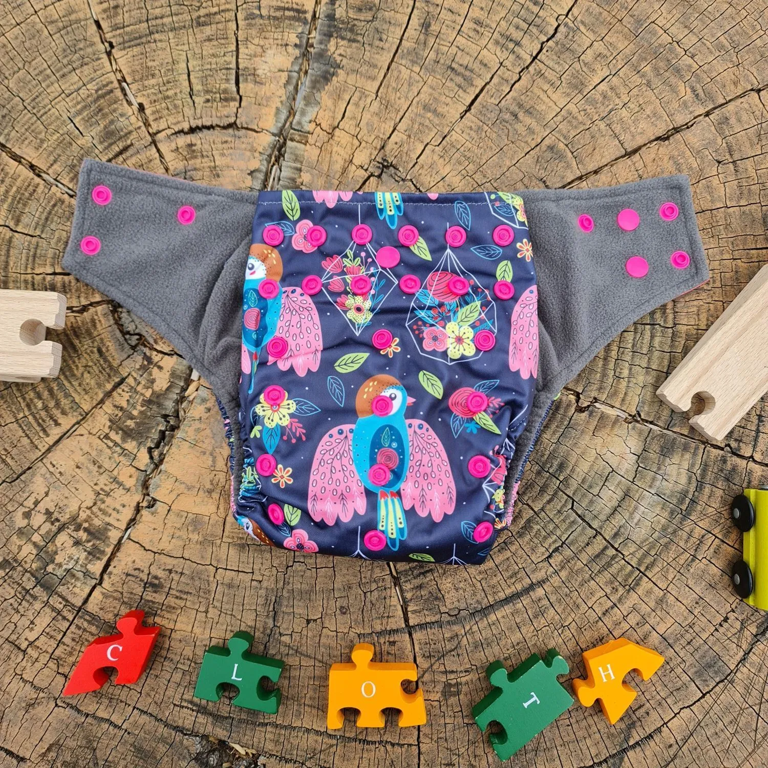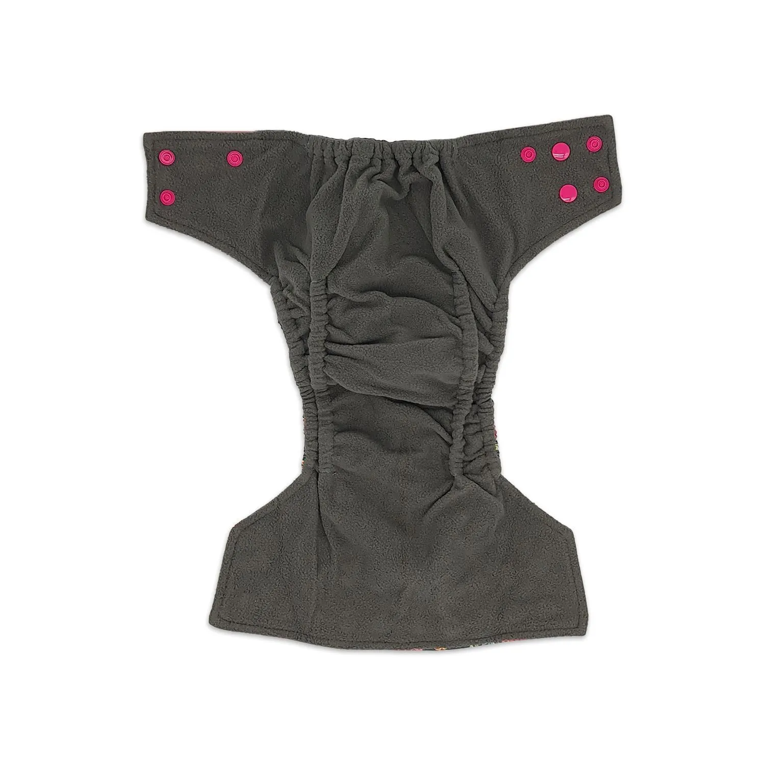 - Designed to fit most babies from birth to toilet training, thanks to the adjustable snaps located on the nappy
