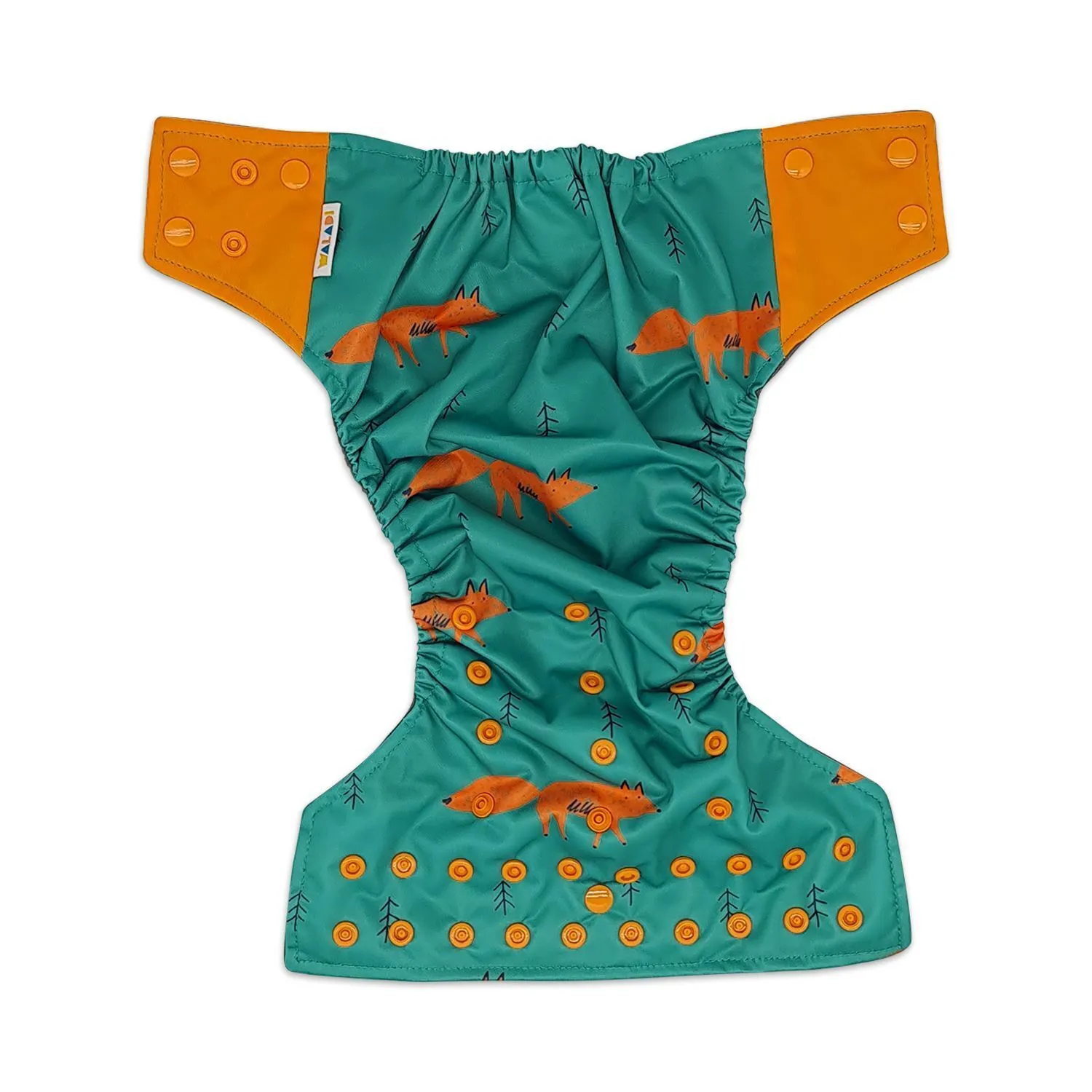 • Designed to fit most babies from birth to toilet training, thanks to the adjustable snaps located on the nappy