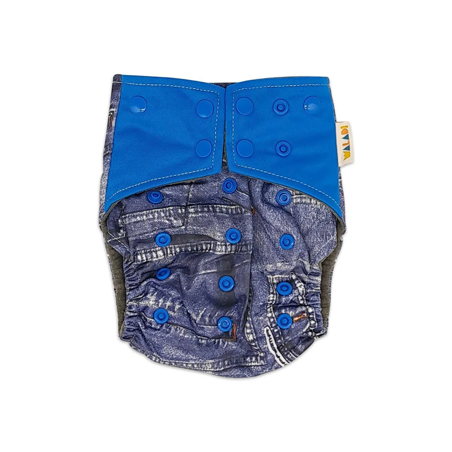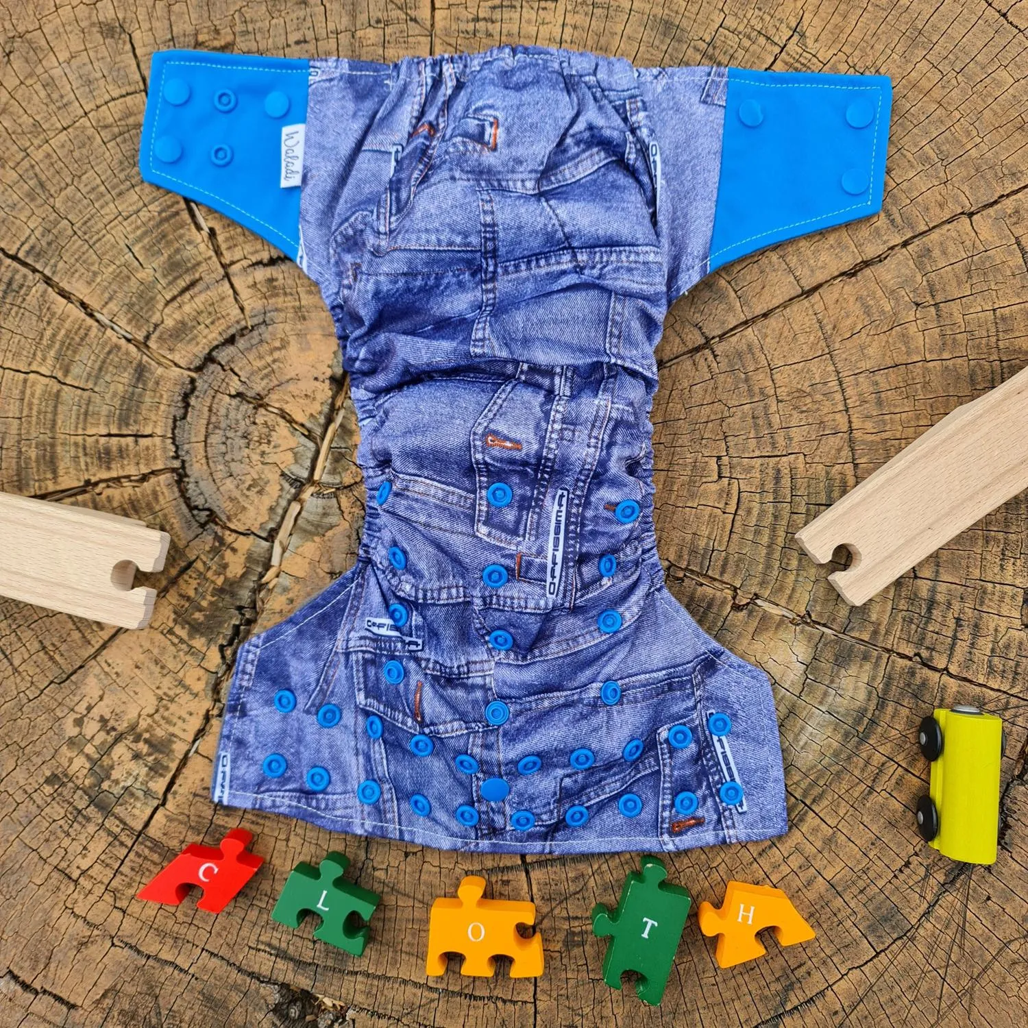 - Designed to fit most babies from birth to toilet training, thanks to the adjustable snaps located on the nappy