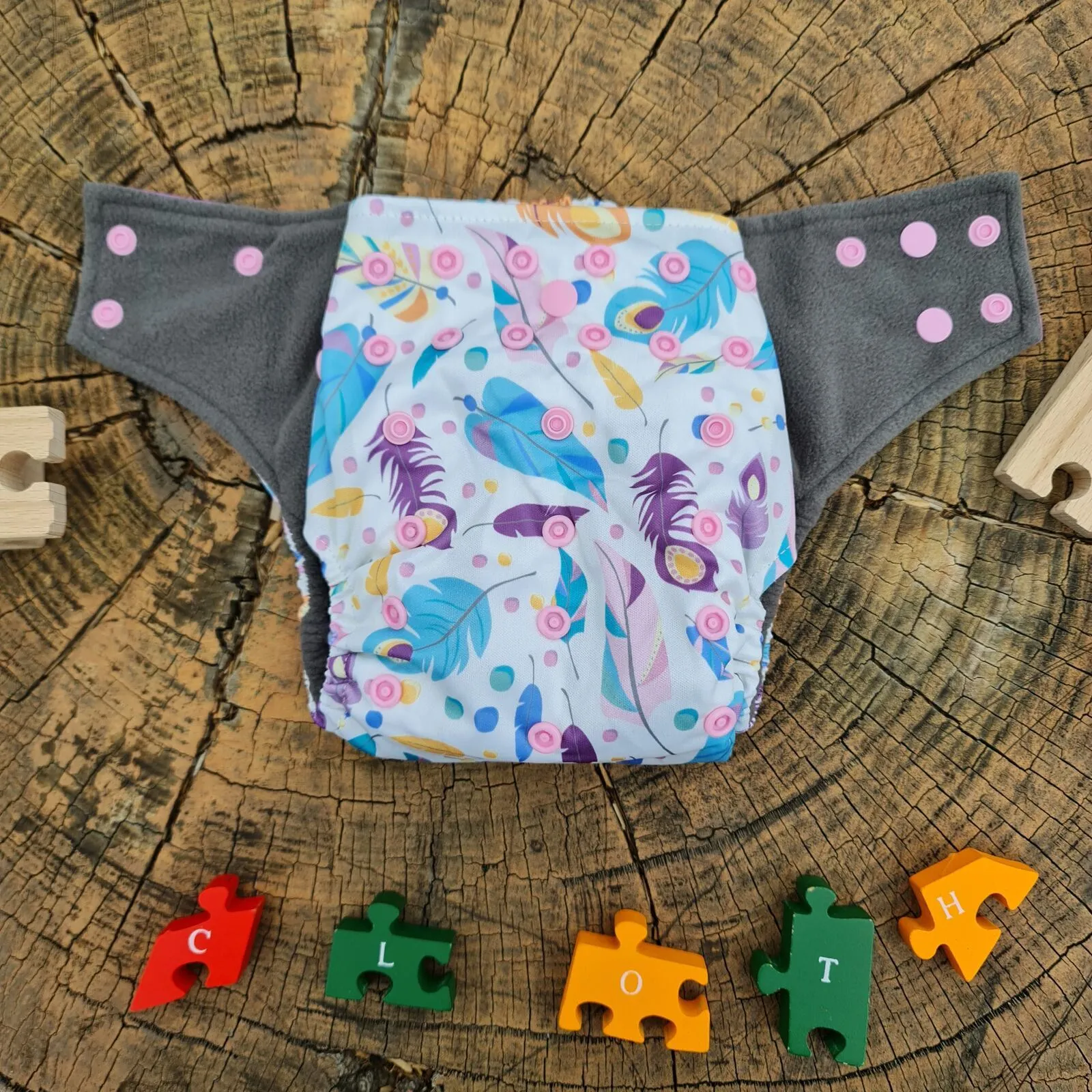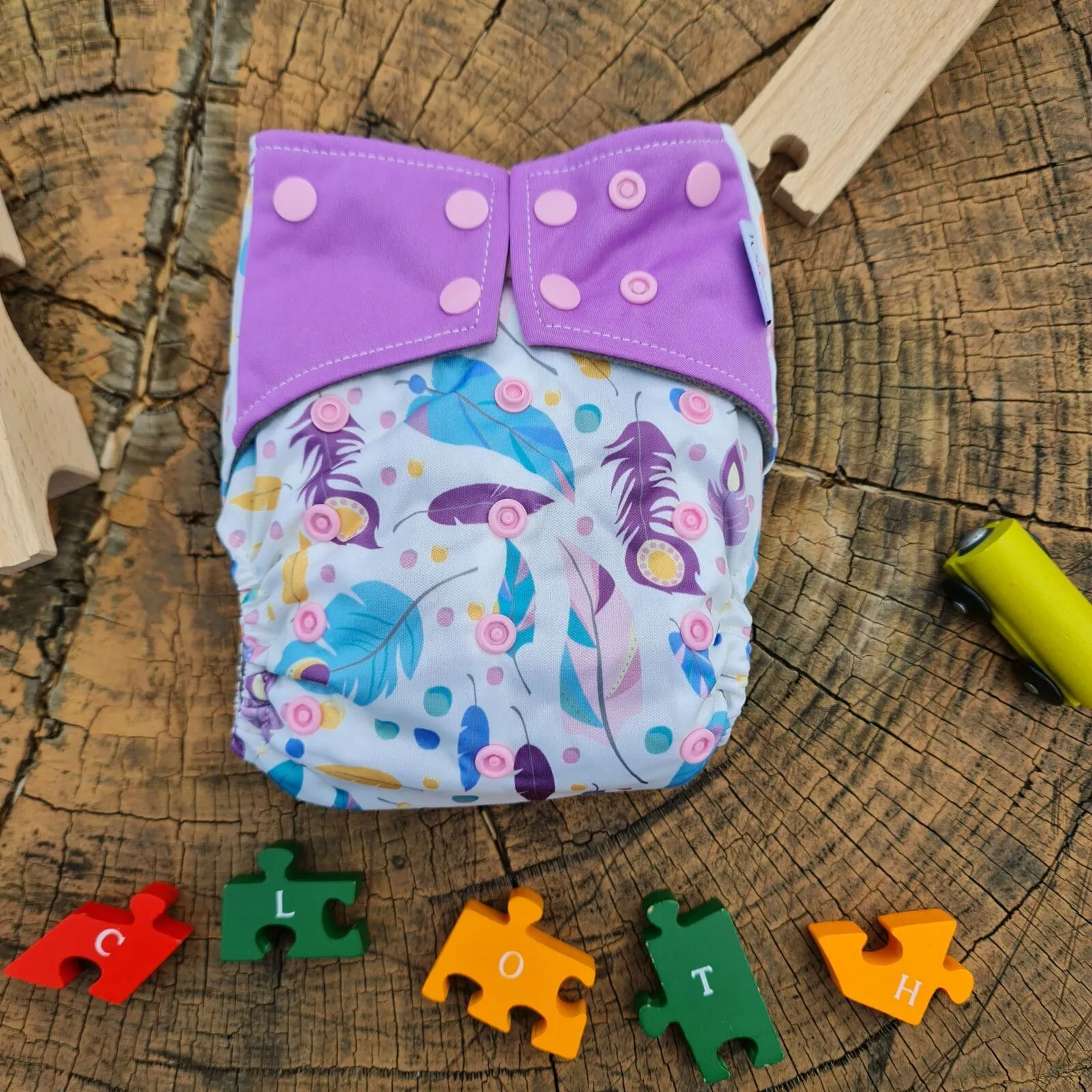 43 reviews for Pink & Purple Feather Design Bamboo Charcoal Cloth Nappy