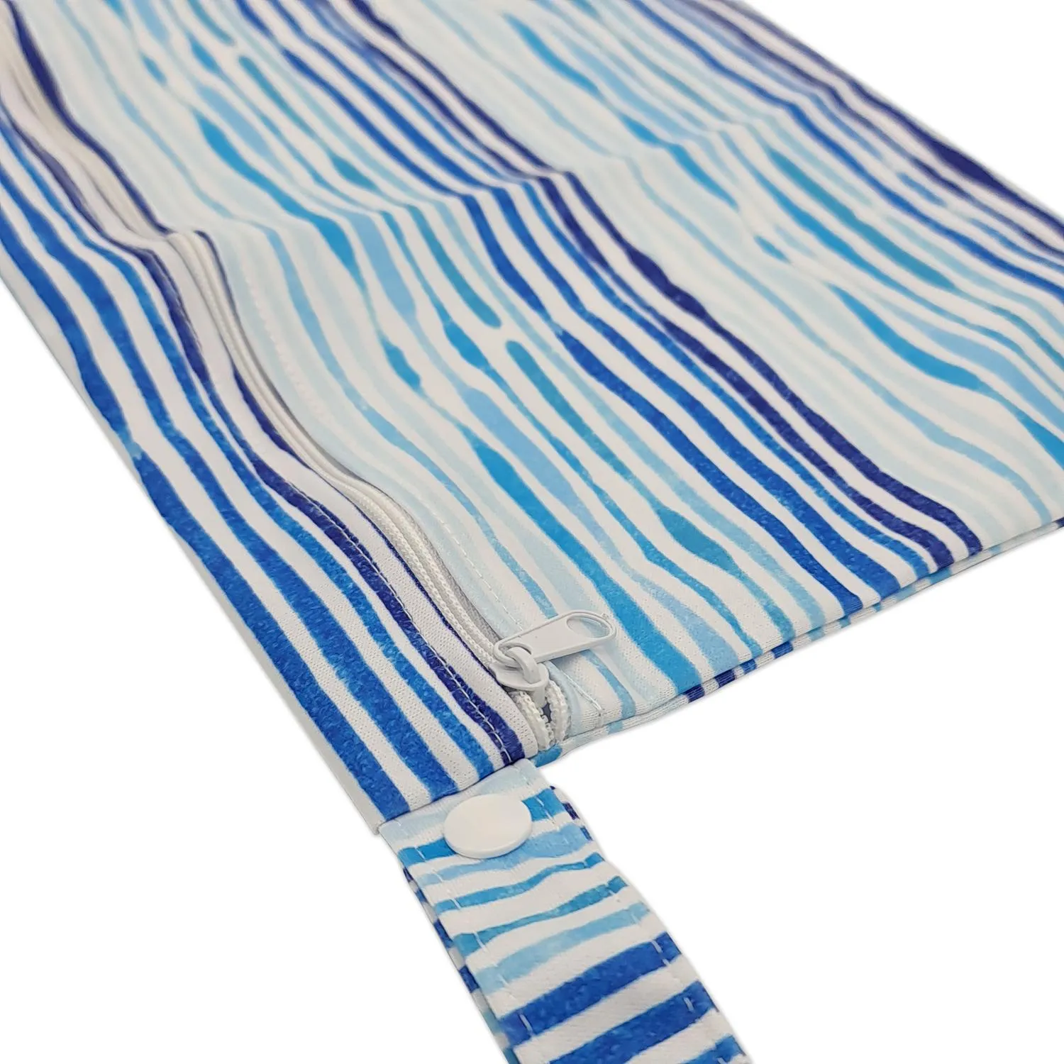 Our pouches are great when taking the little ones swimming. The pouch fits 2 swim nappies and bathers. The pouch also has no seam at the bottom, so you can rest assured that there will be no leaks when putting damp items back in the bag.