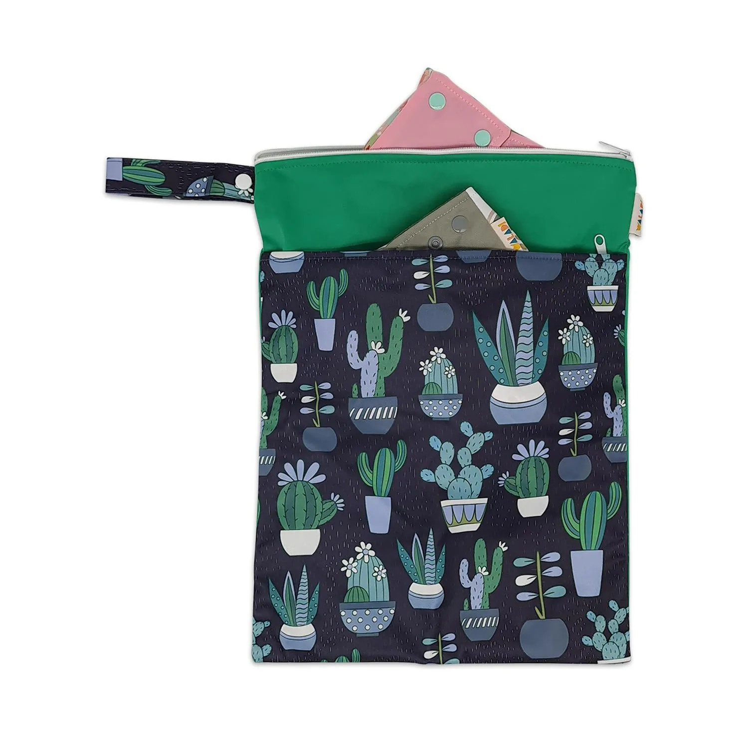 I recently purchased 4 of the medium sized double zip bags in various prints. Yesterday I used them for the first time with wet bathers and was so happy that there were no leaks. They’re a great size and look fab