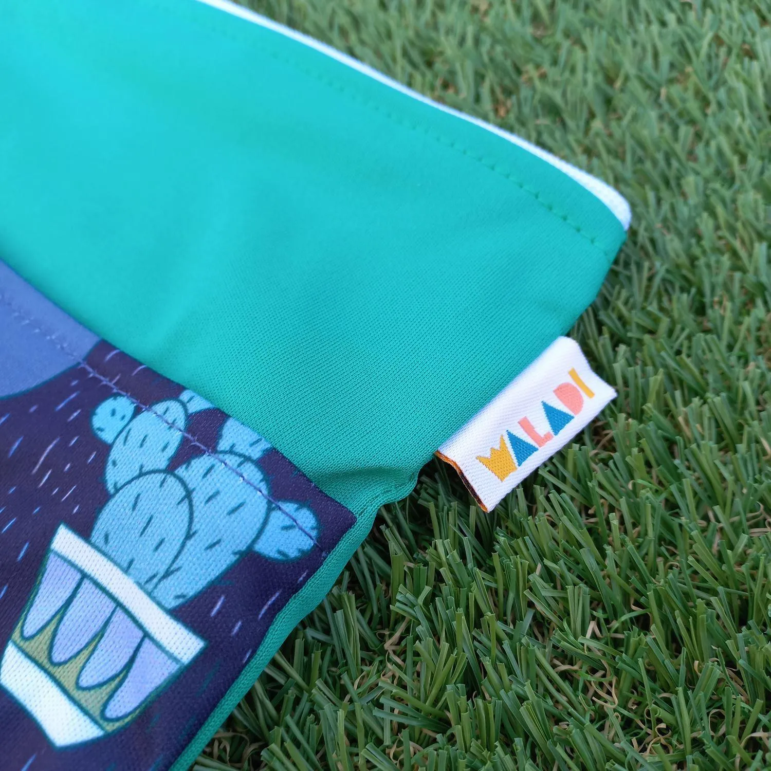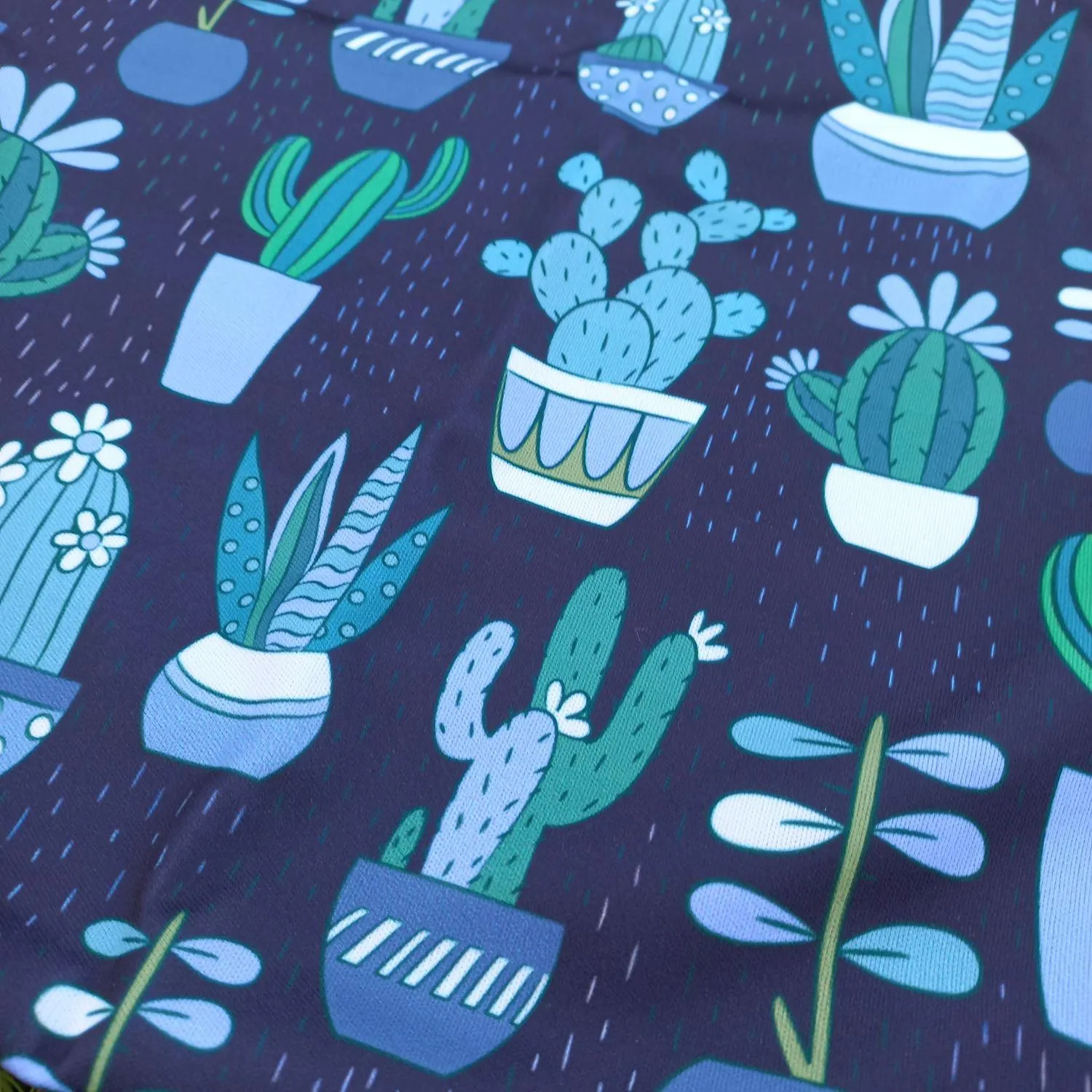 This fun cactus print is sure to be winner with your little one! Green, blue and pops of white make it a quirky addition to your collection.