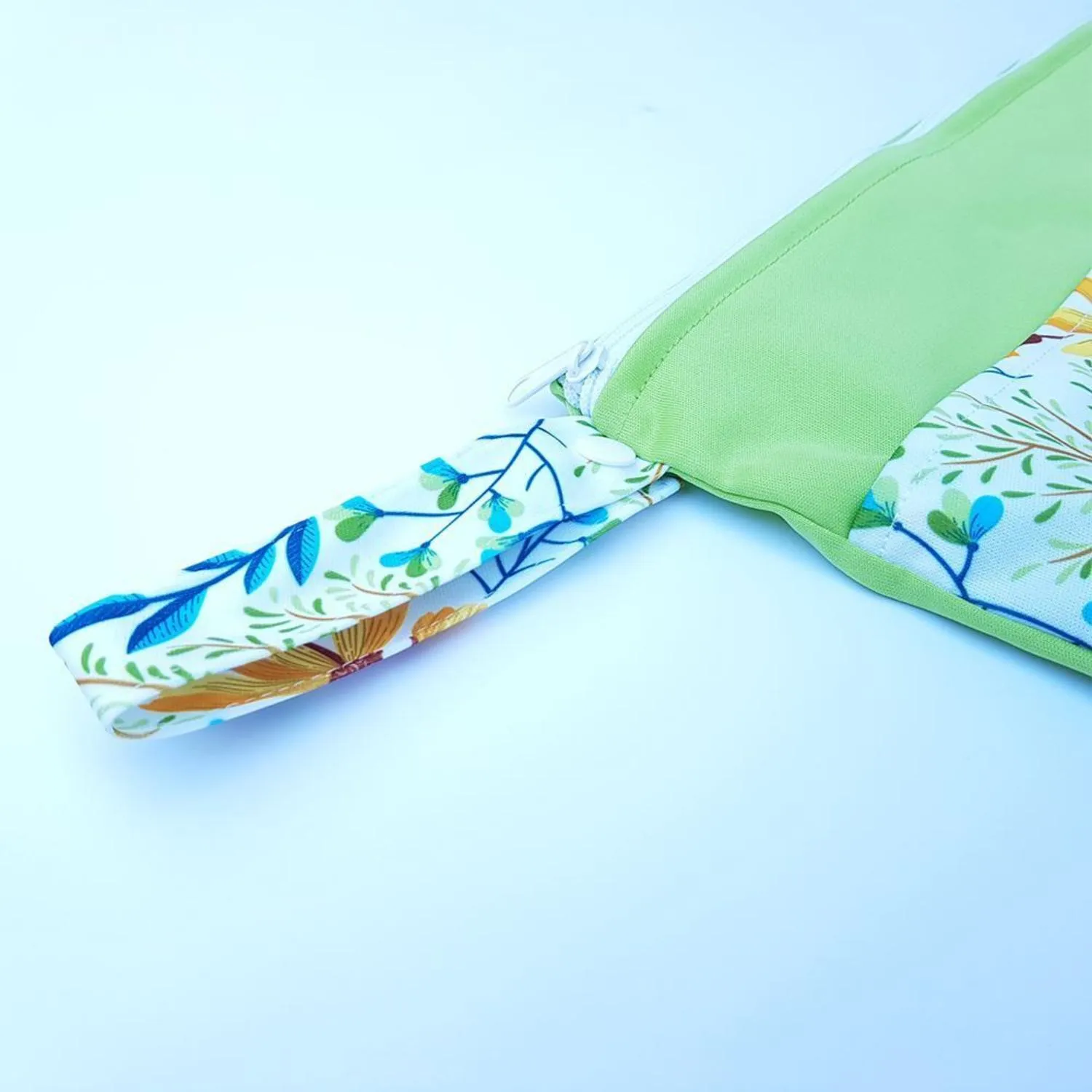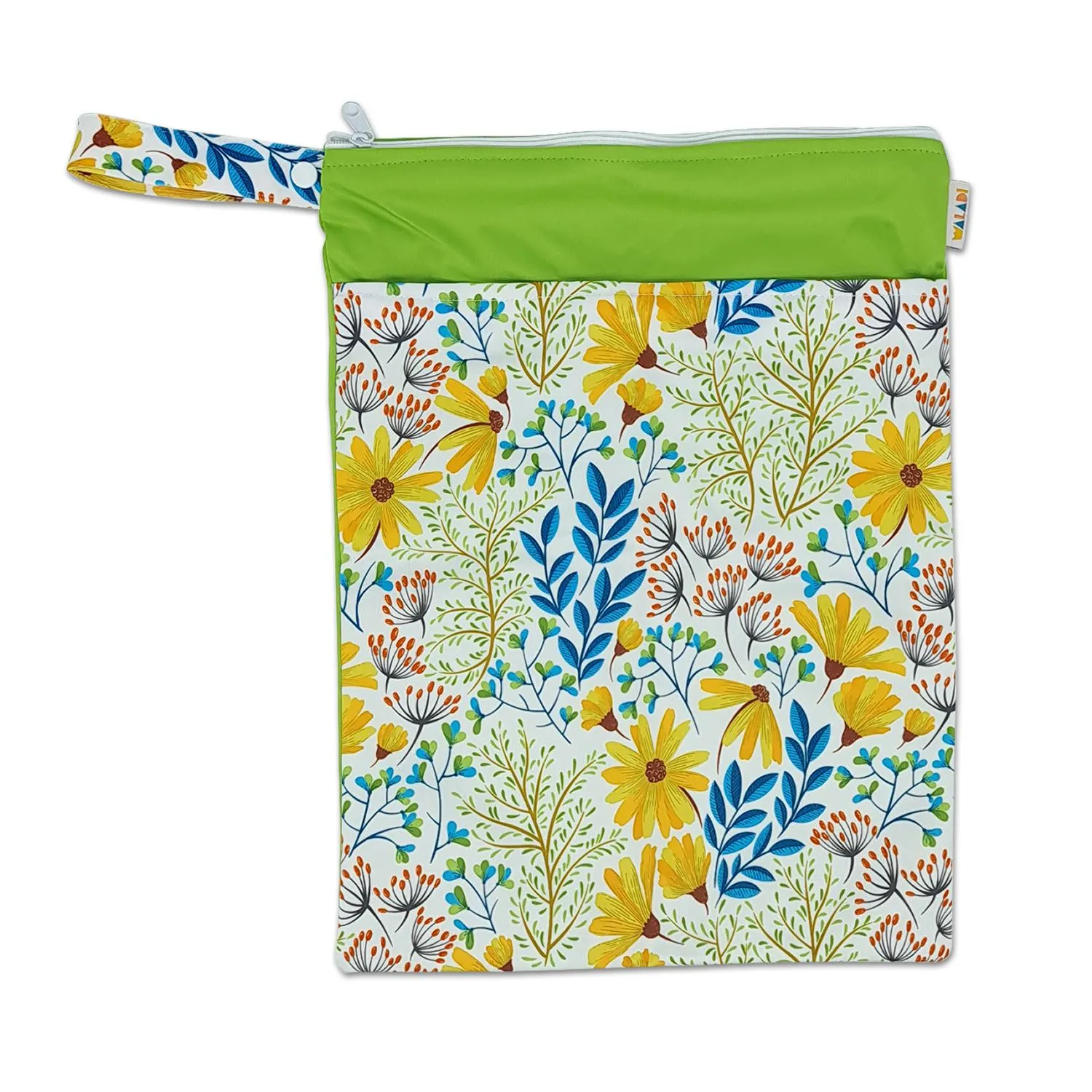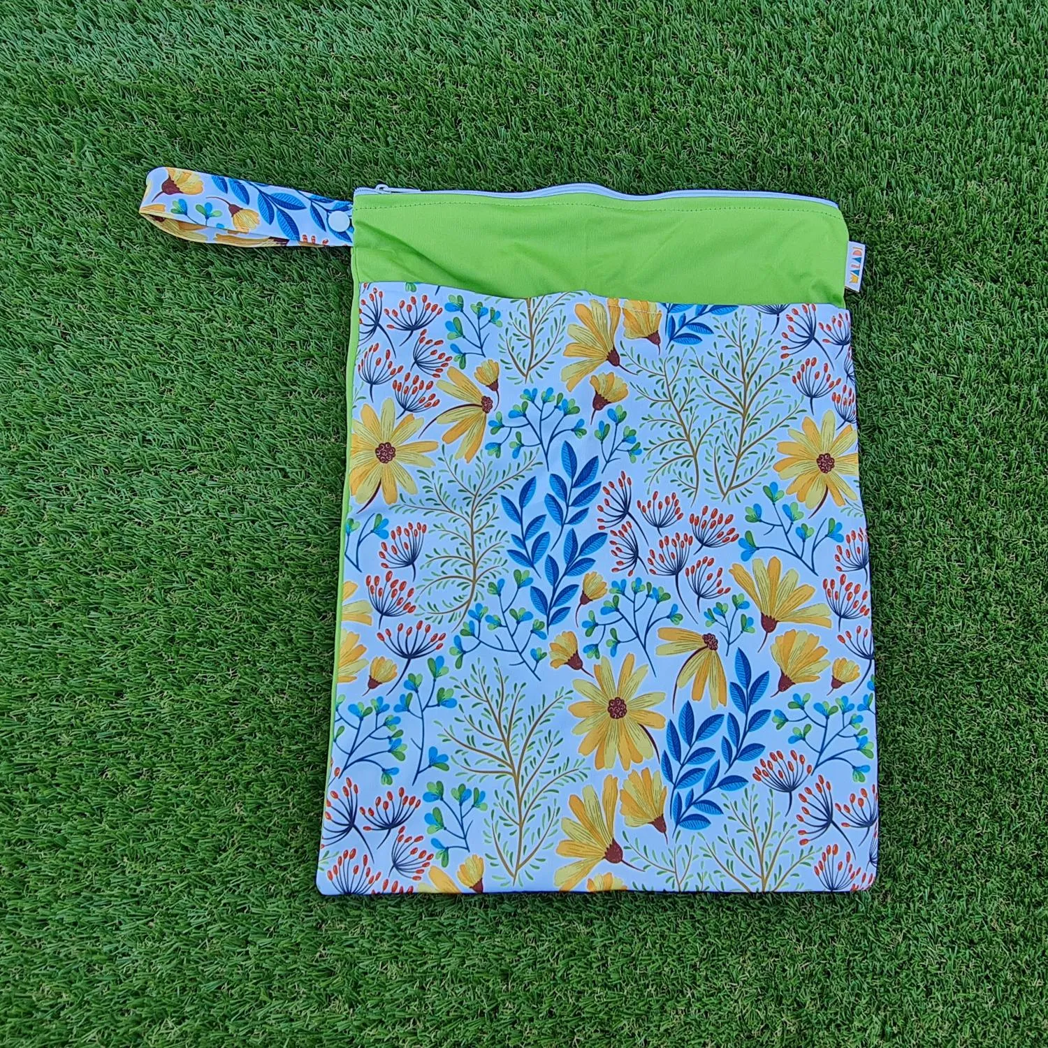 I recently purchased 4 of the medium sized double zip bags in various prints. Yesterday I used them for the first time with wet bathers and was so happy that there were no leaks. They’re a great size and look fab