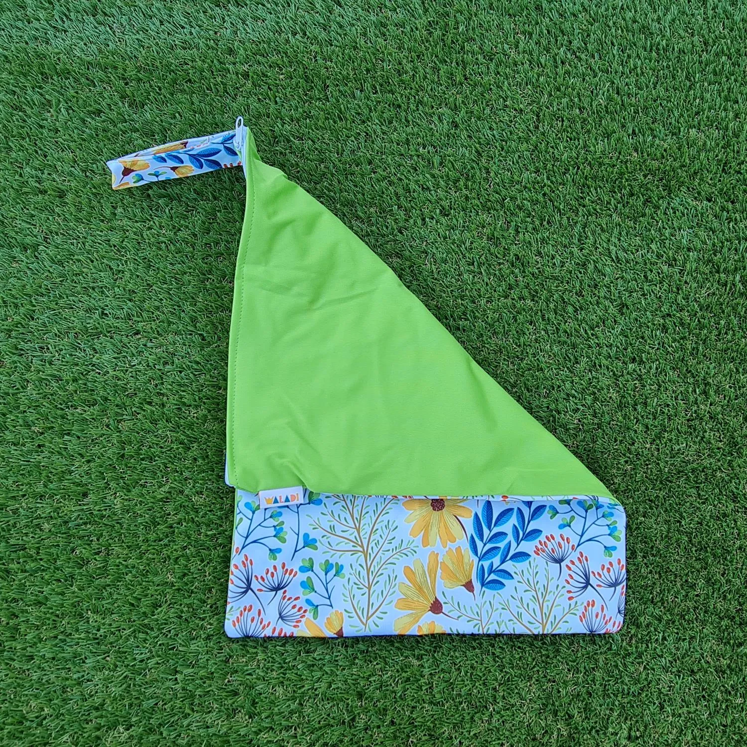 Trialled this bag at swimming this week and it was great. It even fit my daughter’s towel in it. I’ve had wet bags before that still got wet on the outside and dripped but didn’t have this problem with this bag! We are going plastic free so use it for dirty nappies too. Thank you